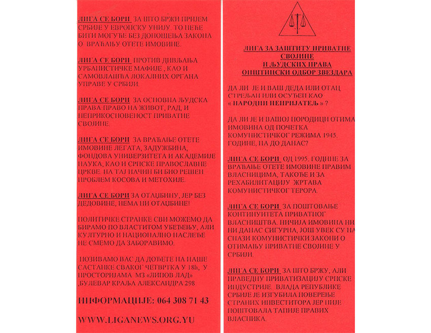 Na slikama se vide protesti Lige, sa jednim zahtevom, da se davno oduzet plac vrati naslednicima gospodina Mitića. Iz vremena dok smo još bili aktivni borci na terenu, a ne uglavnom na internetu. Naravno, čast izuzecima. Skidam kapu pred saborcima koji se još uvek bore za restituciju. Koji se nisu predali i digli ruke. Pogledajte sliku, podsetite se, organizujmo se ponovo. Pokažimo ovoj državi da još nismo mrtvi. Nas desetine hiljada živih koji čekamo da skinemo kletve sa svoje otete imovine koju možda nismo ni mi prokleli. Oteto je ipak, od Boga prokleto.